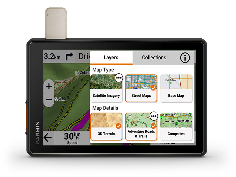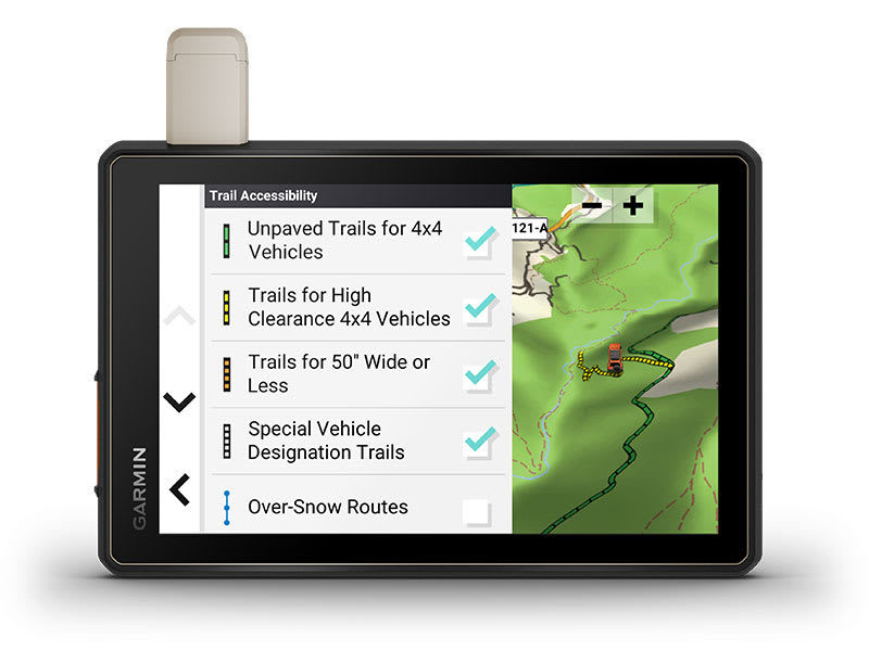 Egyedi útvonaltervezés járműved mérete és tömege alapján2, valamint előre betöltött iOverlander™ érdeklődési pontok (POI-k) segítenek megtalálni a táborhelyet.