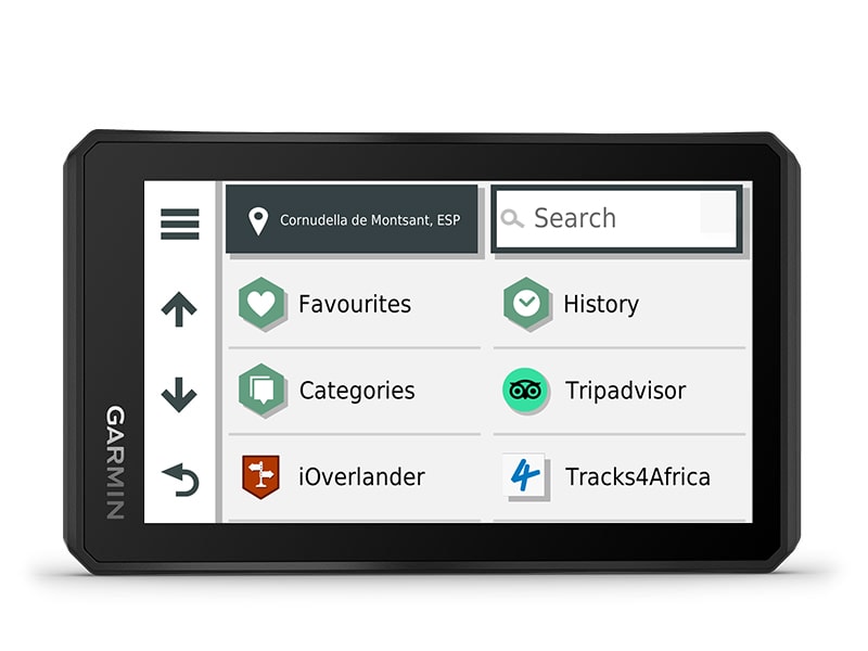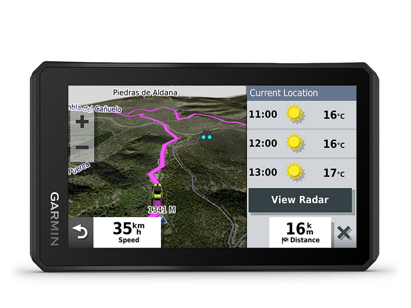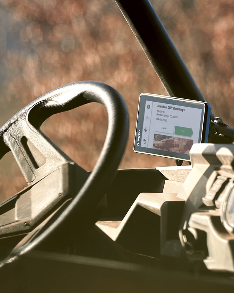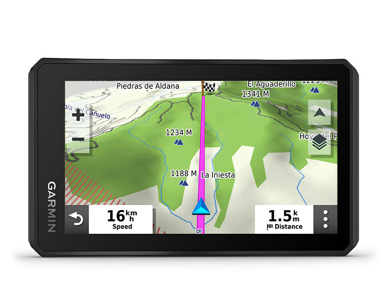 A masszív Tread terep-GPS IPX7 időjárásálló, és kesztyűbarát 5,5″ érintőképernyővel rendelkezik.