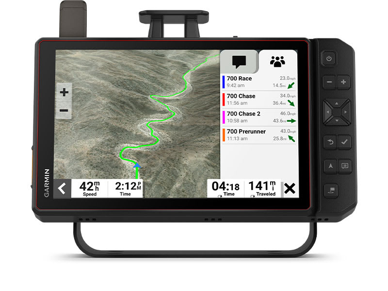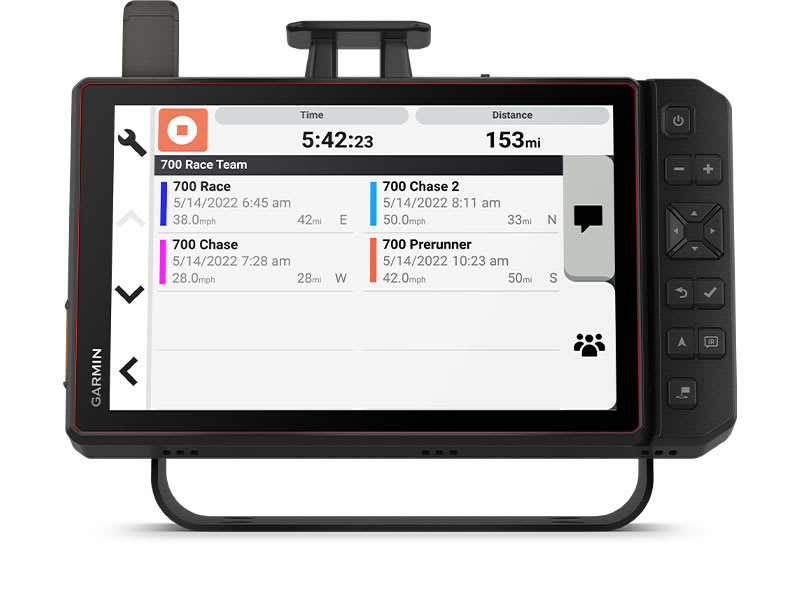 A beépített inReach® technológiával működő csapatkövetés lehetővé teszi, hogy a versenyjárművek és a kísérőkamionok üzeneteket küldjenek egymásnak és valós idejű helyzetfrissítésekkel1 kövessék egymást.
