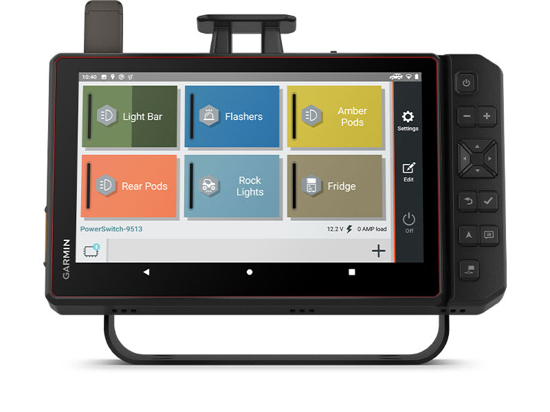 A Tread XL terepverseny navigáció a Garmin PowerSwitch™ digitális kapcsolódobozzal (külön kapható) együttműködik, hogy vezéreld a jármű 12 voltos kiegészítőit, például a kővilágítást, a ventilátorokat és a levegőpumpákat.