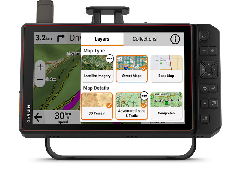 Ez a masszív terepverseny navigáció por- és időjárásálló IP67 minősítéssel, és 10″ ultrafényes érintőképernyővel rendelkezik.