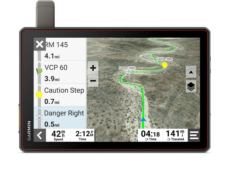 Kifejezetten minden terepre tervezve, ez a Tread terepre szánt versenynavigáció ellenáll a sivatagi hőmérsékleteknek és a nehéz terepviszonyoknak. Emellett IP67-minősítésű