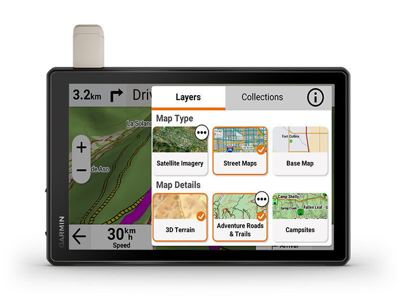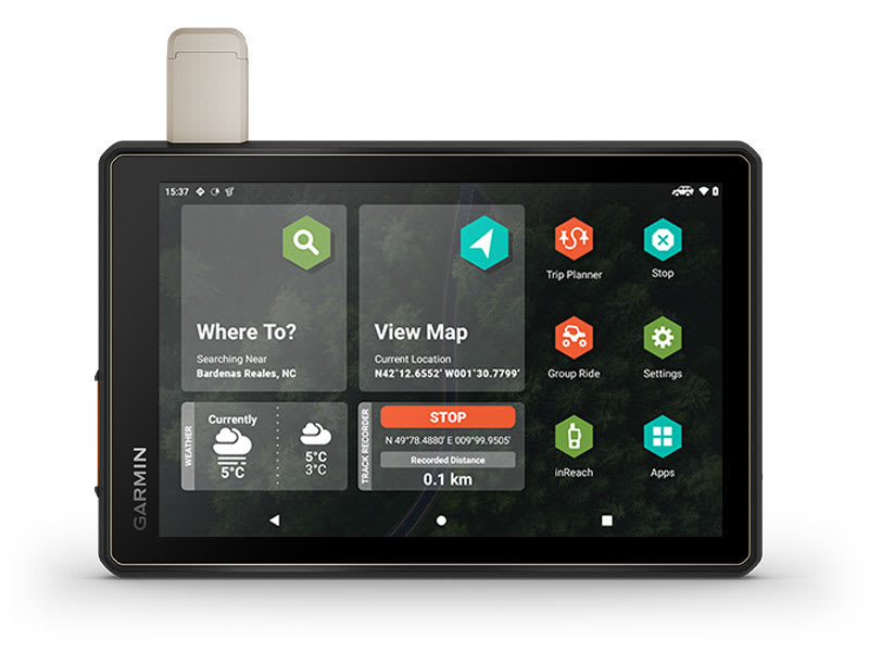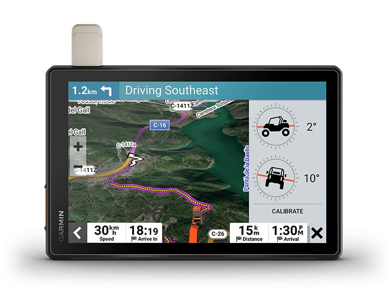 Az út minden szakaszára tervezve — ez a különösen nagy, rendkívül strapabíró, minden terepre alkalmas műholdas navigációs készülék rendelkezik azokkal a térképekkel, amelyekre szükséged van az eligazodáshoz, és kommunikációs technológiával, hogy úton is kapcsolatban maradhass.