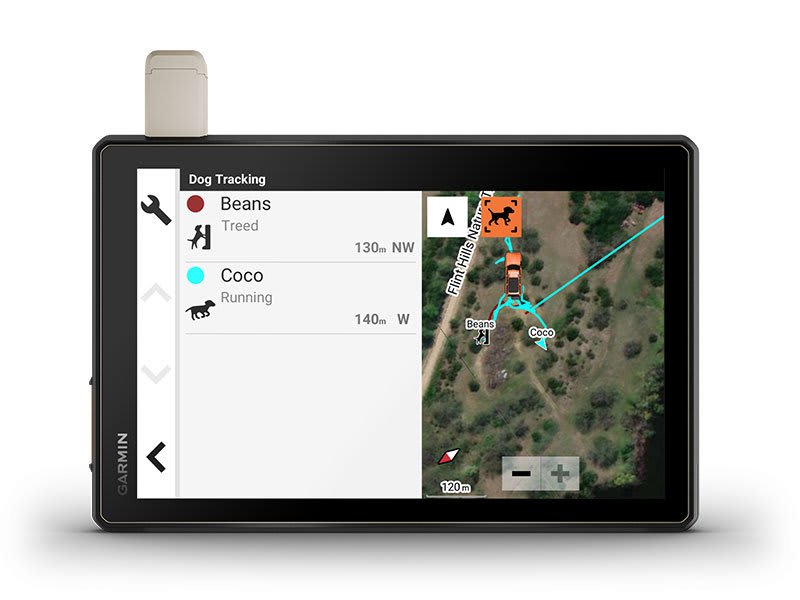 Vezeték nélküli párosítással kötheted össze a Tread powersport navigációt kiválasztott Garmin GPS kutyakövetőkkel (külön kaphatók), hogy a vadászkutyáidat a terepen nyomon követhesd és visszakeríthesd. A műholdas navigáció térképén minden, a nyomkövetési hatótávolságon belüli kutyához külön jelzőt láthatsz.
