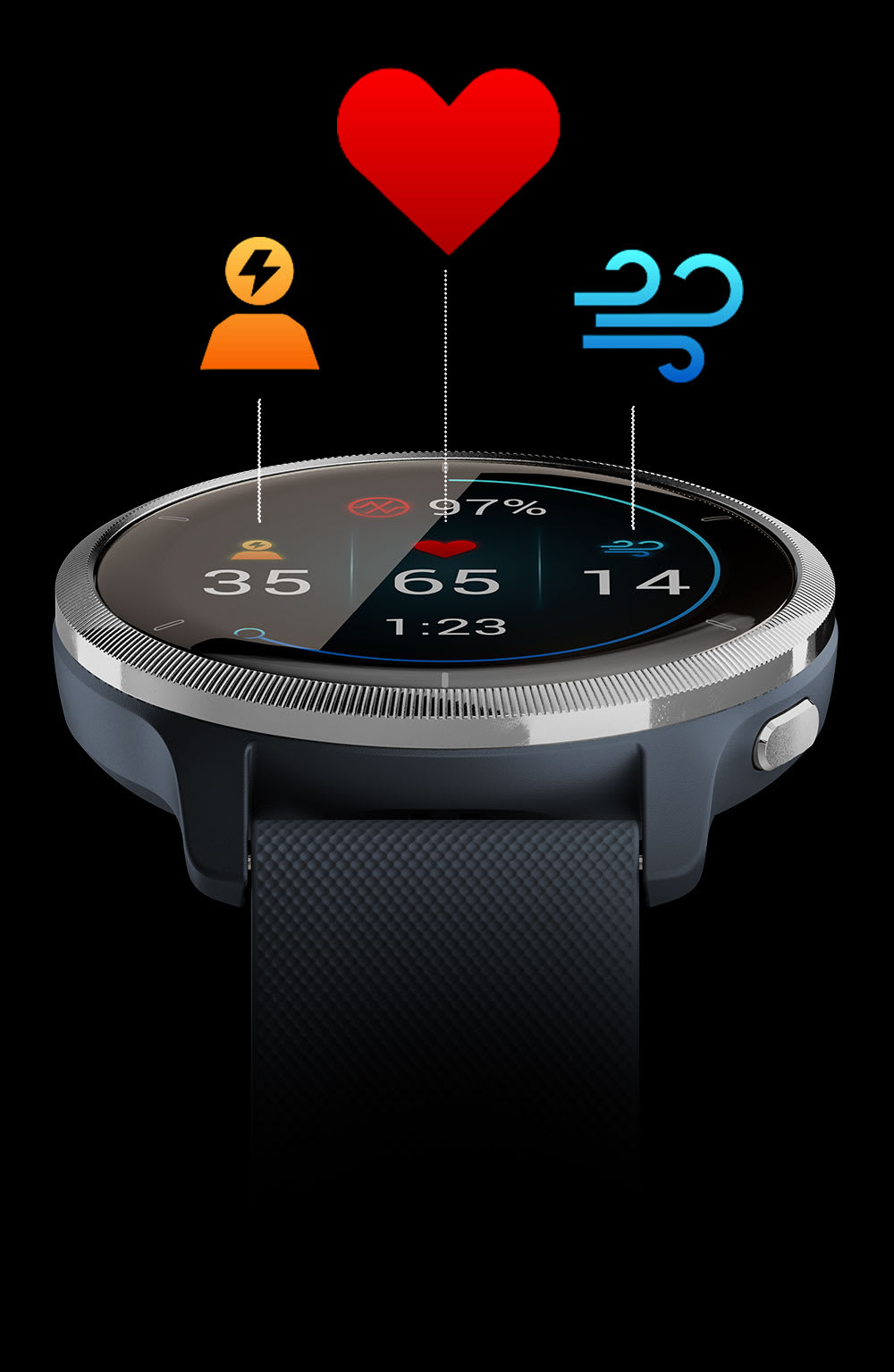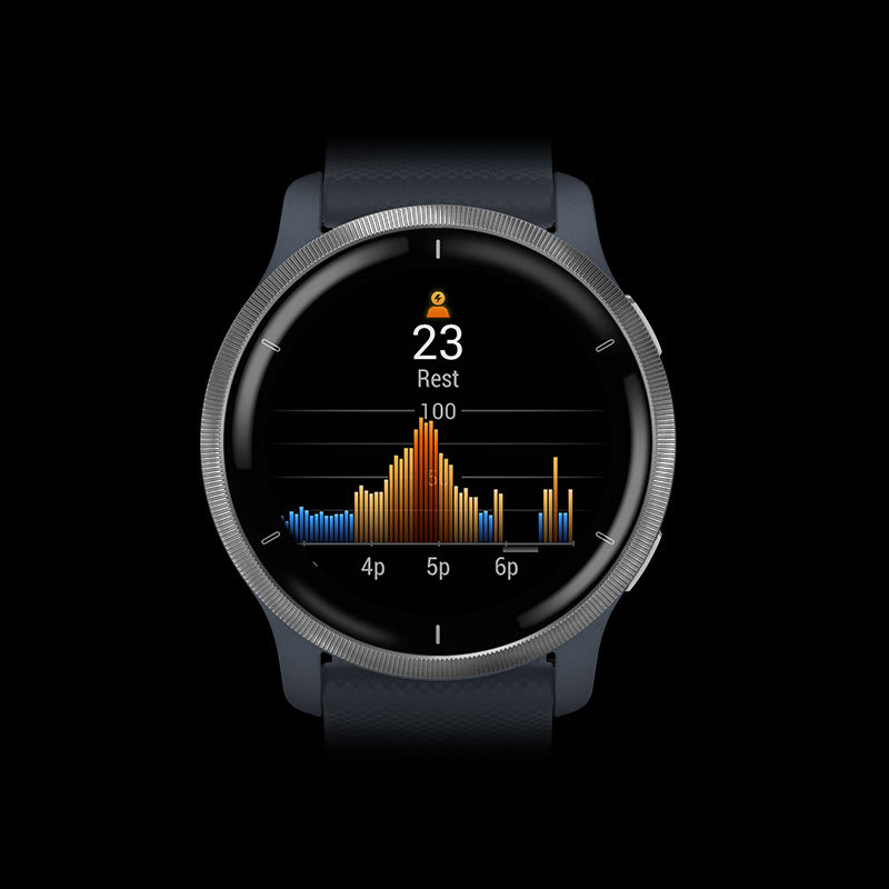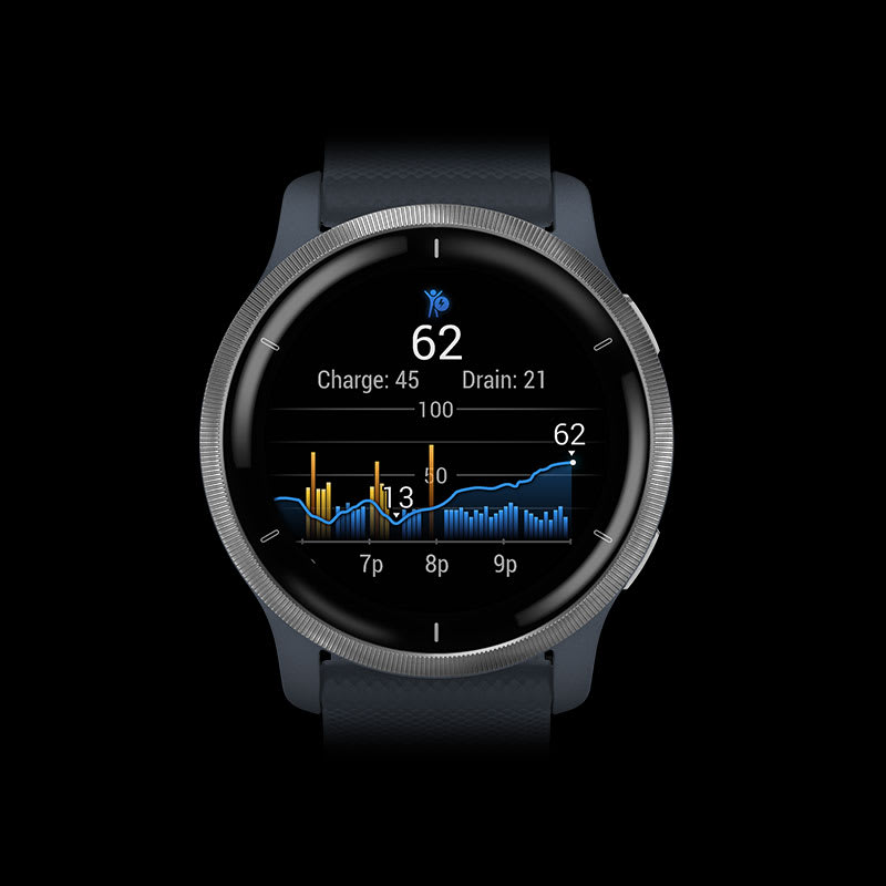 Rögzíts egy 2 perces mérést a kulcsfontosságú adatok felvételéhez, többek között a pulzust2, a pulzusvariabilitást, a Pulse Ox3-ot, a légzést és a stresszt. Ezután a Garmin Connect™ alkalmazáson keresztül generálj jelentést ezekről az adatokból a kompatibilis okostelefonodon, és oszd meg.