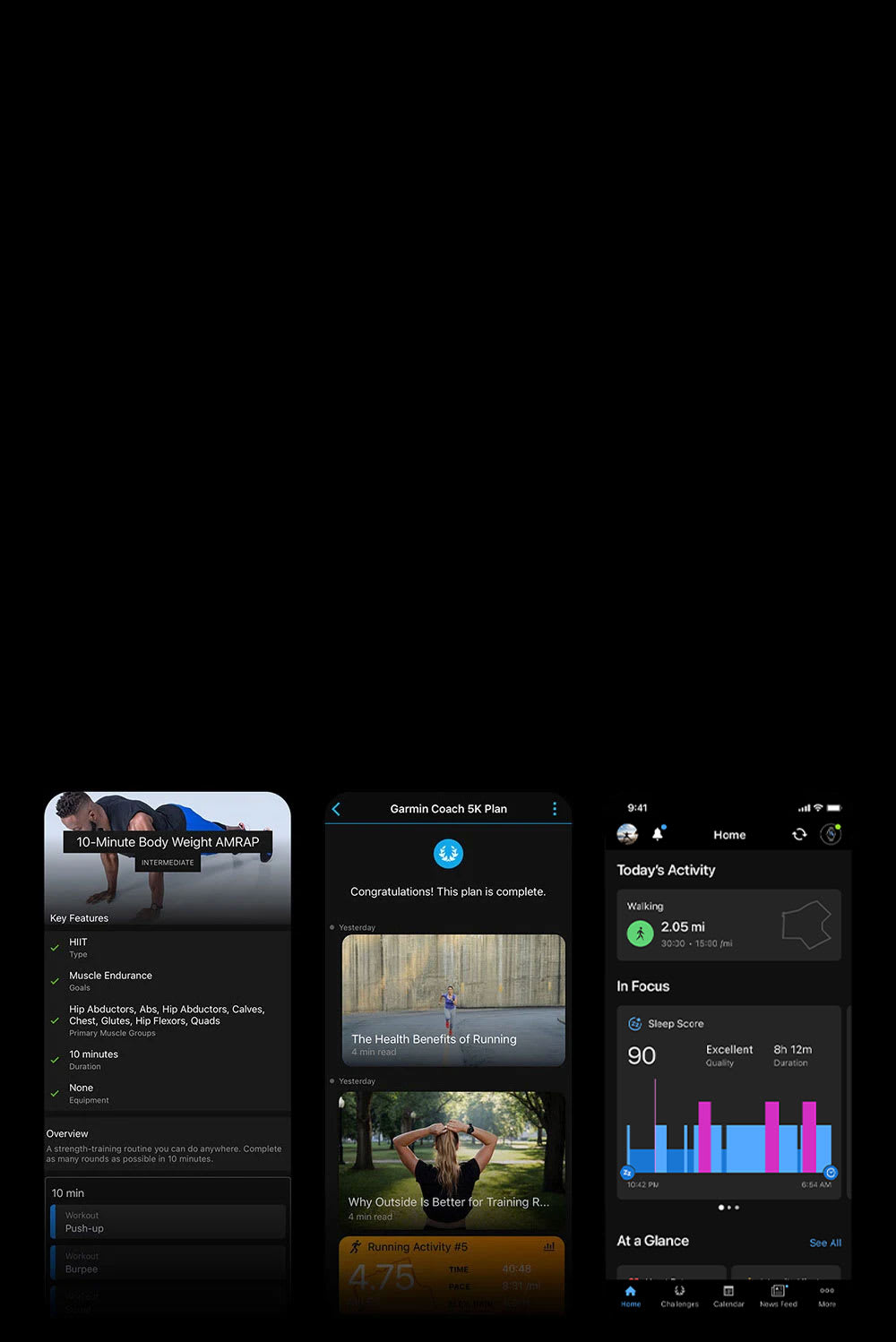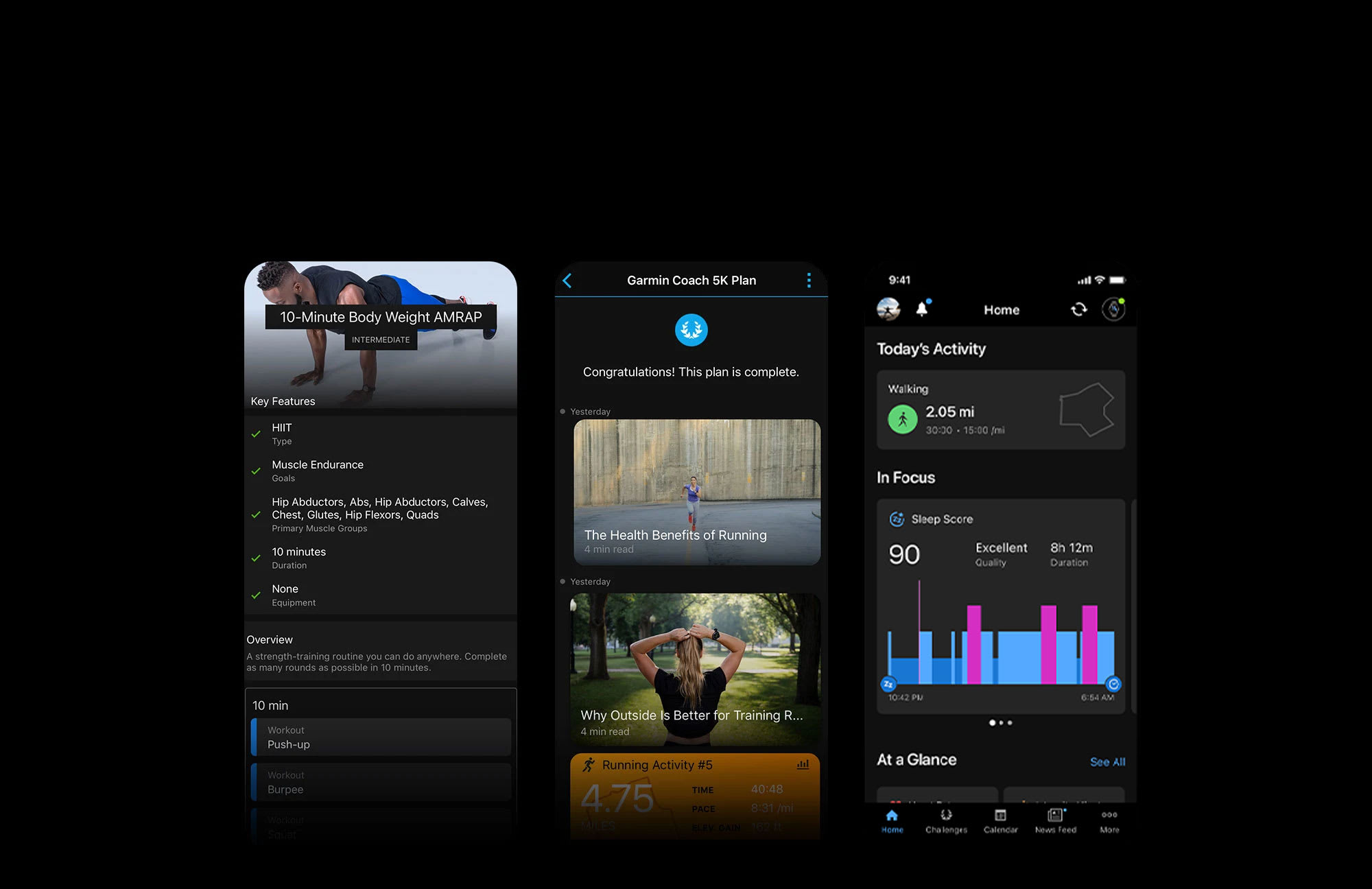 Lásd egészségügyi és fitnesz adataidat egy helyen. A Garmin Connect alkalmazás egy pezsgő online közösség, ahol mozgásban lévő emberek kapcsolódhatnak, versenyezhetnek és megoszthatnak.