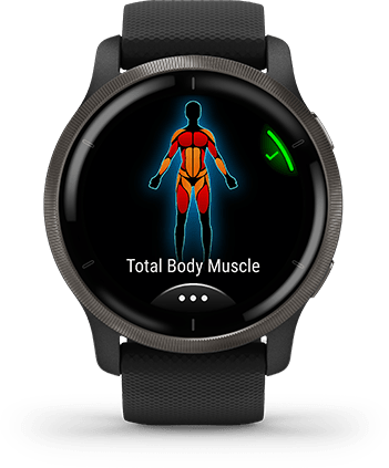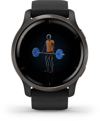 Könnyen követhető, animált kardio-, erő-, jóga-, Pilates- és magas intenzitású intervallum edzések (HIIT) előre telepítve vannak az órán, és továbbiakat tölthetsz le a Garmin Connect alkalmazásból.