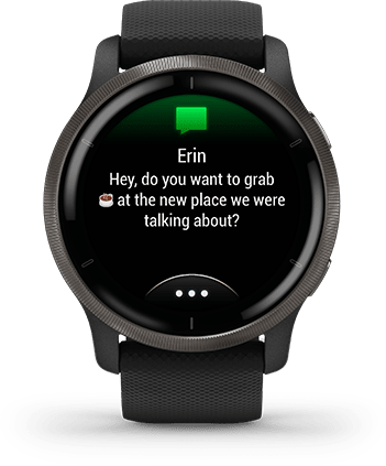 E-maileket, SMS-eket és értesítéseket fogadhatsz közvetlenül az órán, ha párosítva van Apple® vagy Android™ okostelefonnal. Androidos telefon esetén még SMS-ekre is válaszolhatsz.