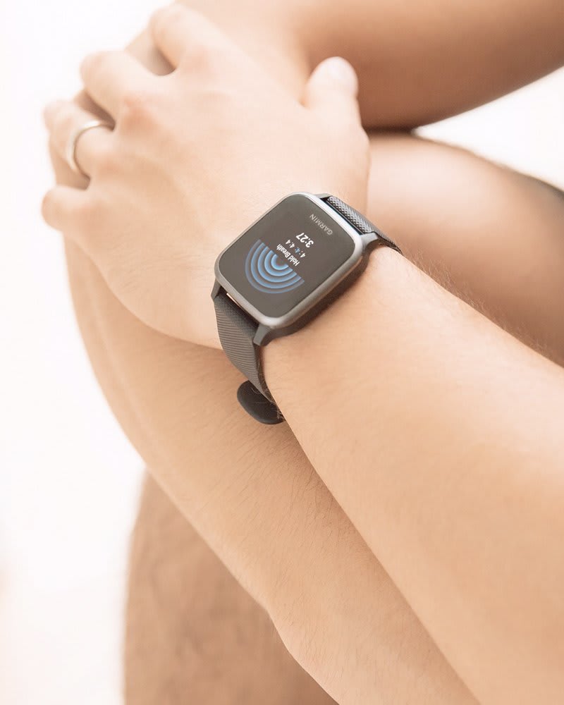 Amíg kint van és mozog, a Venu Sq lépéseket, intenzitásperceket, elégett kalóriákat és még többet követ.