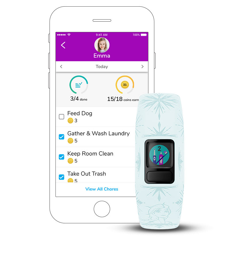A Garmin jr. alkalmazással a szülők szinkronizálás után megtekinthetik az aktivitást, a feladatokat, az alvást, a házimunka adatait és még sok mást kompatibilis eszközökkel.