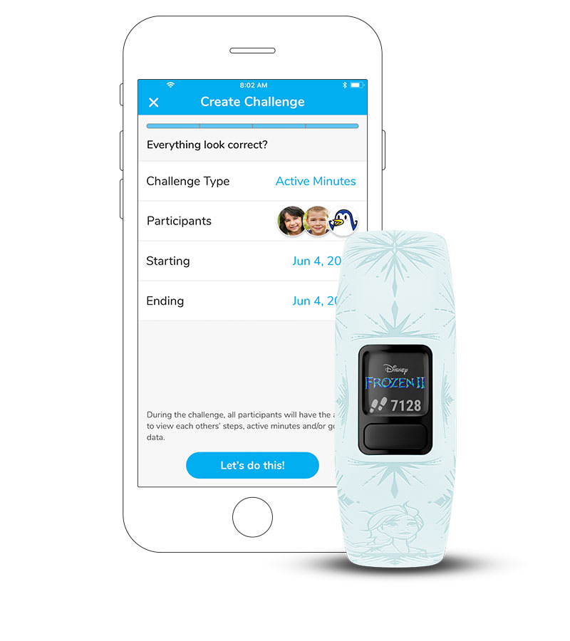 A vívofit jr. 2 nem csupán egy gyerekeknek szánt fitneszkövető. Interaktív élmény, ahol a mozgás felold izgalmas, a Disney Frozen 2 alkalmazásban található kalandokat.1