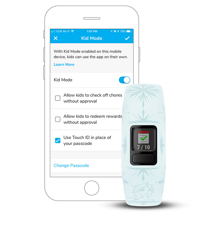 Kapcsold be a Gyerek módot a Garmin jr. alkalmazásban, hogy a gyermeked korlátozott hozzáférést kapjon saját házimunkái nyomon követéséhez és kipipálásához, valamint hogy megtekinthesse a legújabb küldetést az alkalmazás kalandjában.