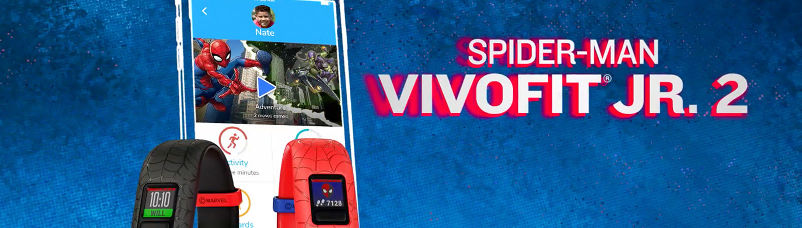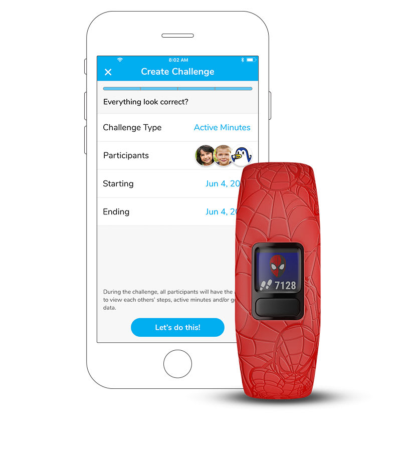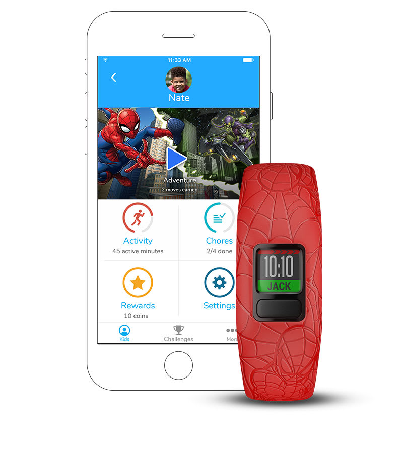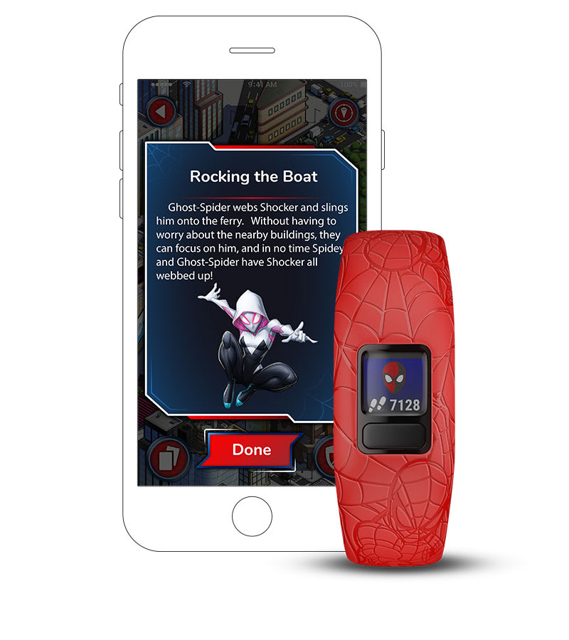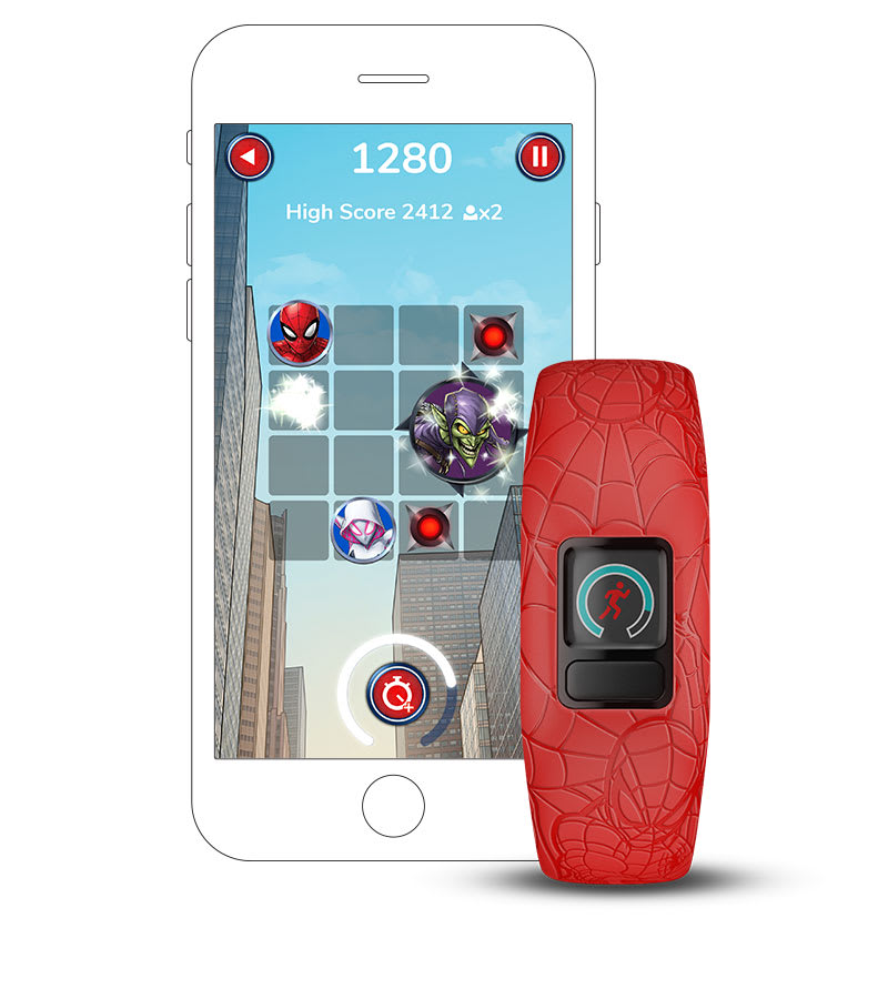 vívofit jr. 2 nem csupán egy fitneszkövető gyerekeknek. Ez egy interaktív élmény, ahol a mozgás kalandokat nyit meg. Az úszásbarát szíj több mint 1 év akkumulátor-élettartammal rendelkezik. Ezzel a gyerekek a szülők által irányított alkalmazáson keresztül Marvel Pókember kalandokat fedezhetnek fel, ha naponta 60 perc aktivitást teljesítenek.