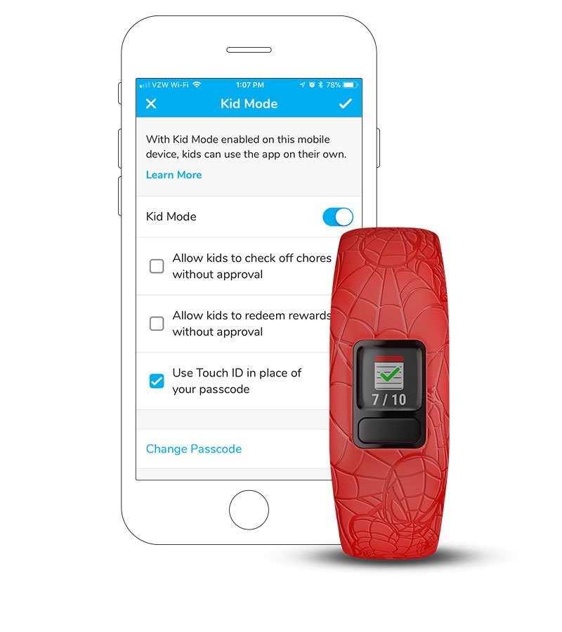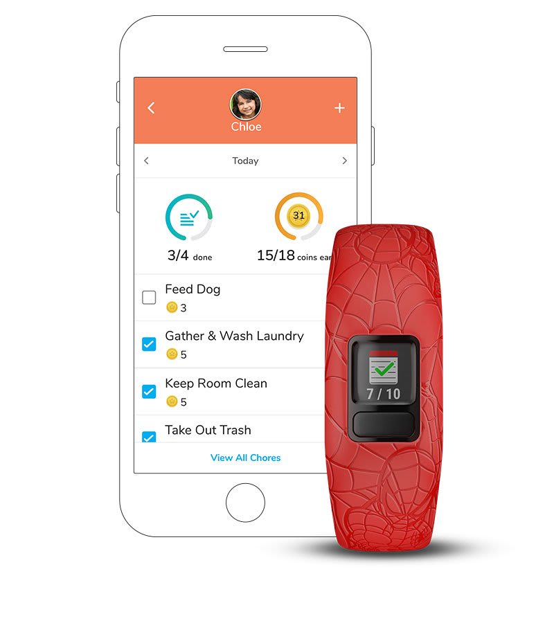 A Garmin jr. alkalmazással a szülők megtekinthetik az aktivitást, a feladatokat, az alvást, a házimunkák adatait és még többet a kompatibilis eszközökkel történő szinkronizálás után.