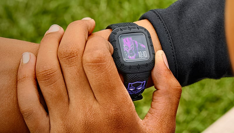Hagyd, hogy a gyerek kiválassza, miben szeretne felöltözni — Iron Man, Black Panther vagy Black Panther – Special Edition dizájnokkal. A színes kijelző és a választott karakteres óraszámlap biztosítja, hogy minden meglegyen a kalandokhoz.