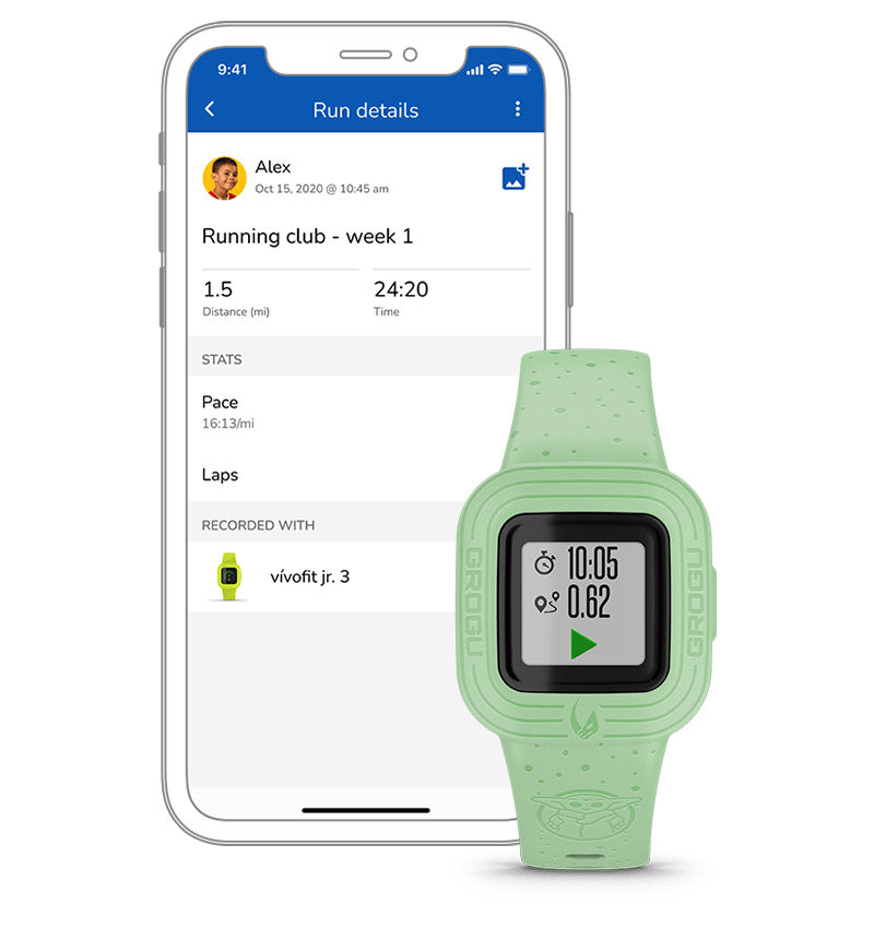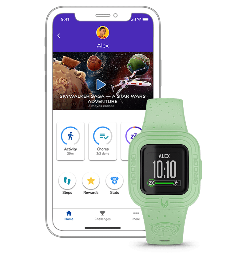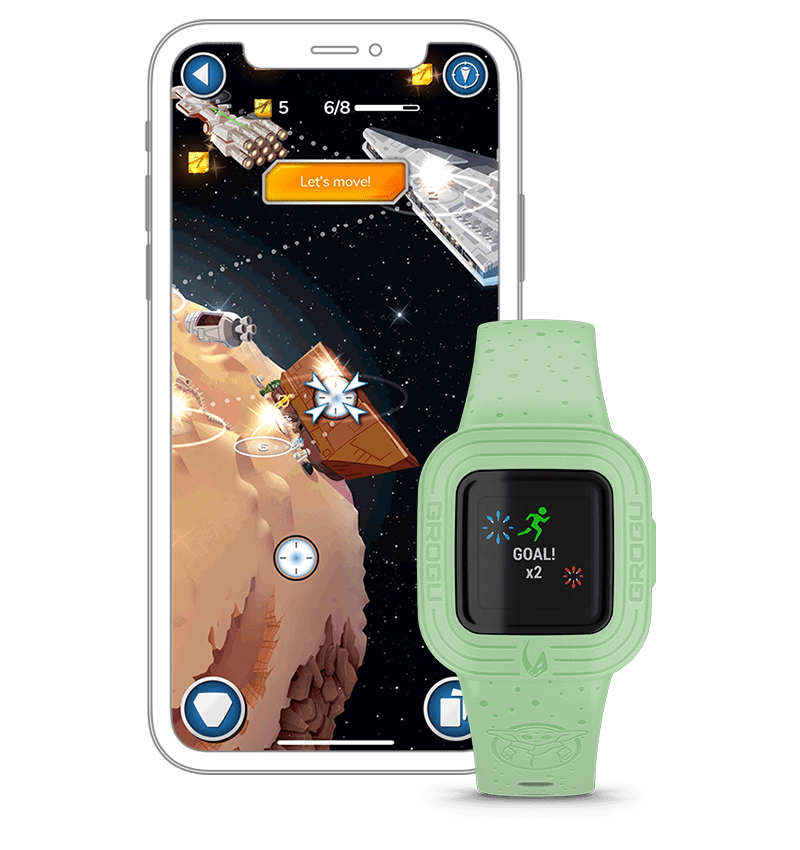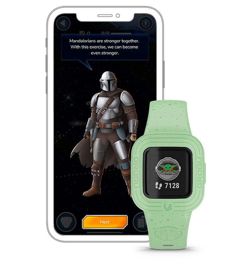 A vívofit jr. 3 nem csupán egy fitneszkövető gyerekeknek. Interaktív élmény, ahol a gyermek aktivitása izgalmas Star Wars-alkalmazásbeli kalandokat nyit meg a szülők által vezérelt okostelefonos alkalmazásban. A gyerekek pedig kiválaszthatják a megjelenésüket — The Mandalorian™ vagy Grogu™.