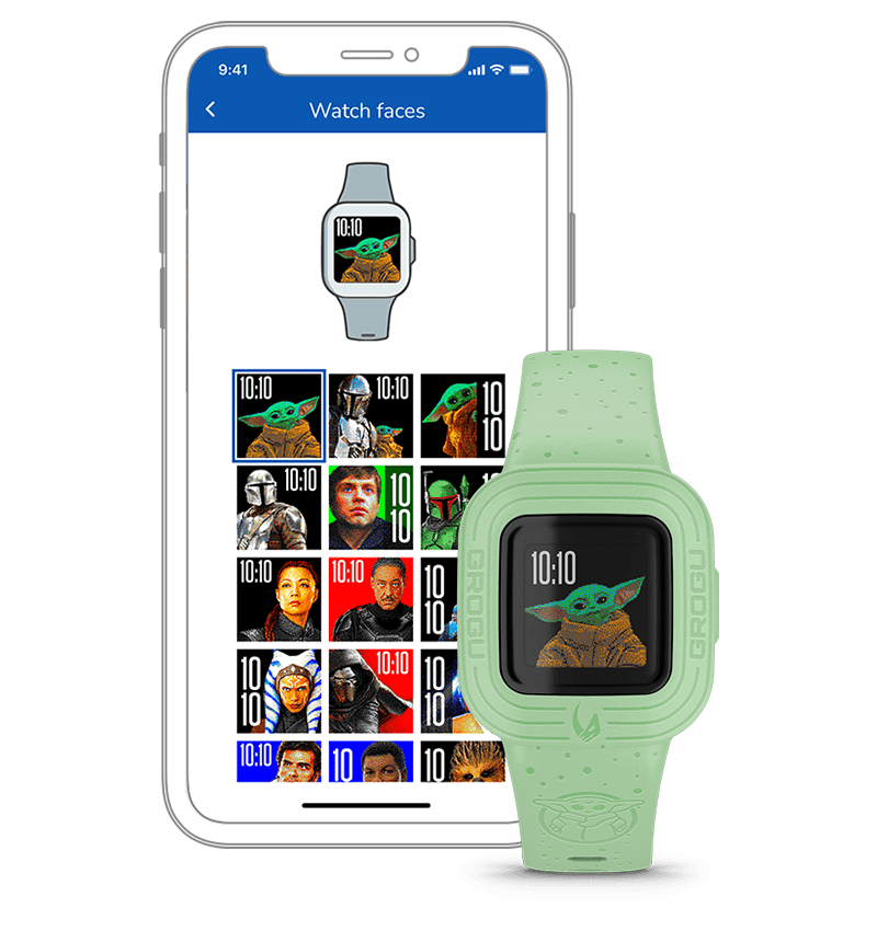 Engedd meg a gyerekeknek, hogy személyre szabják fitneszkövetőjüket 20 különböző számlapopcióval, beleértve a népszerű Star Wars és The Mandalorian sorozat szereplőit.