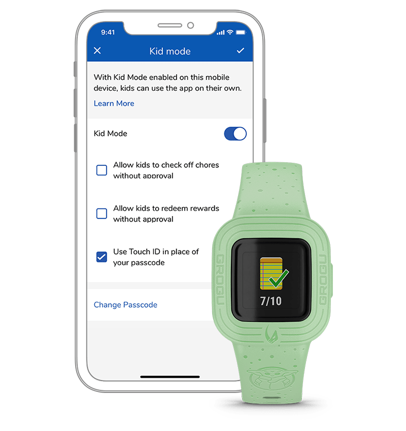 Kapcsold be a Gyerek módot a Garmin Jr. alkalmazásban1, hogy korlátozott hozzáférést adj a gyermekednek saját házimunkáinak nyomon követéséhez és bejelöléséhez, valamint legfrissebb küldetésének megtekintéséhez az alkalmazás kalandjában.