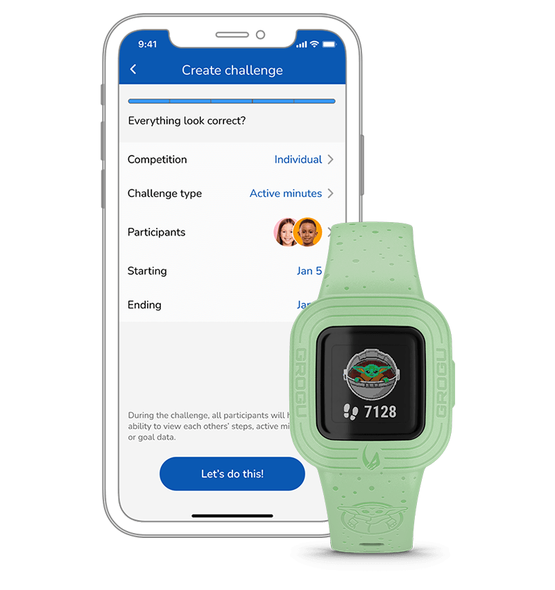 Kapcsolódjatok össze a gyermeked barátaival a Garmin Connect™ alkalmazásban, és csatlakozzatok más családokhoz a Garmin Jr. alkalmazásban1. Lépjetek kölcsönhatásba velük, és versenyezzetek többcsaládos heti lépéskihívásokban.