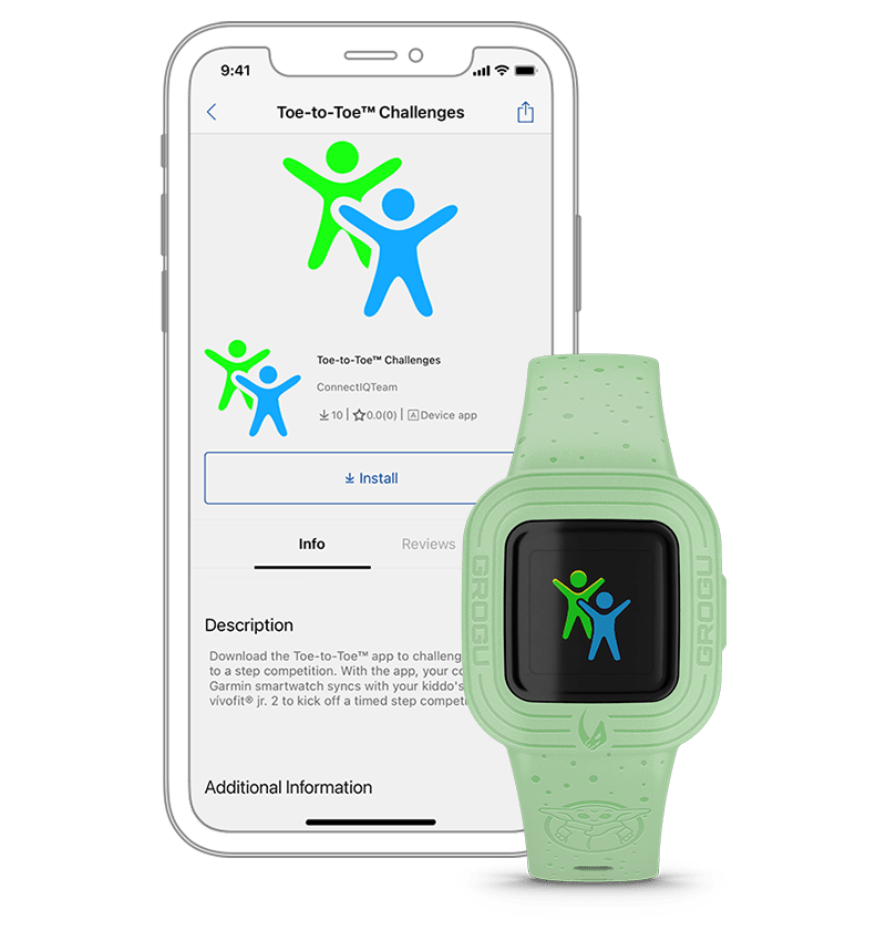 A Toe-to-Toe™ lépéskihívásokkal a gyerekek szinkronizálhatnak közeli barátokkal, hogy időre menő lépésszámláló versenyekben mérkőzzenek meg. A szülők is bekapcsolódhatnak a mókába a Toe-to-Toe alkalmazással és egy kompatibilis Garmin viselhető eszközzel.