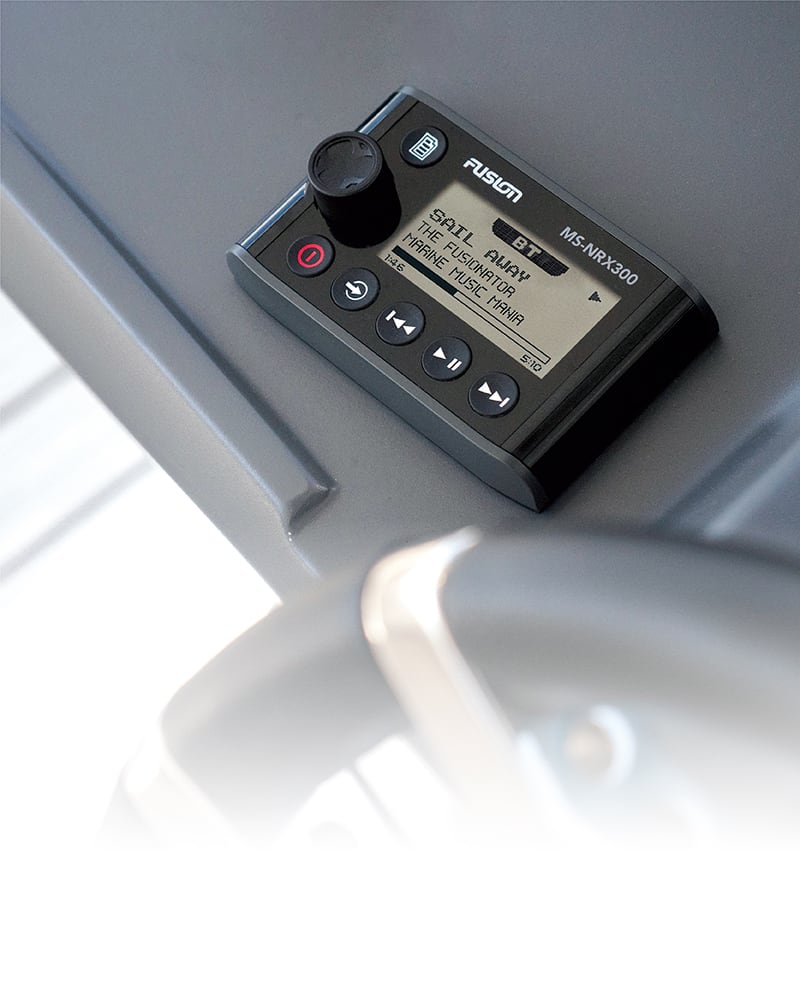 Fusion NRX300 vezetékes távirányító lehetővé teszi, hogy élvezze a helyi hangvezérlést a hajó bármelyik hangzónájában.