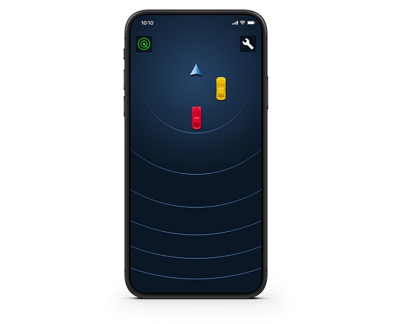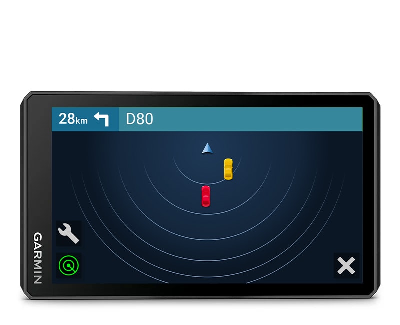 A zūmo R1 Radar párosítható kompatibilis okostelefonoddal vagy a zūmo® XT2 motoros navigációs készülékkel, hogy teljes képernyős radarmegjelenítést láss a körülötted lévő járművekről.